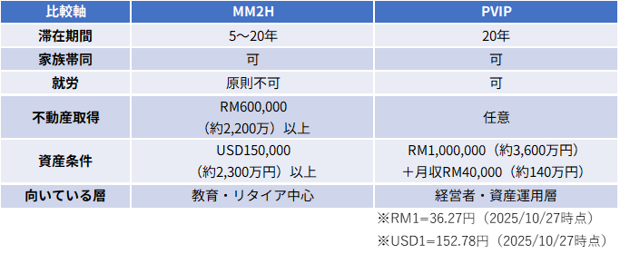 MM2H (マレーシア・マイ・セカンド・ホーム)vs PVIP(プレミアム・ビザ・プログラム)(2025年時点)