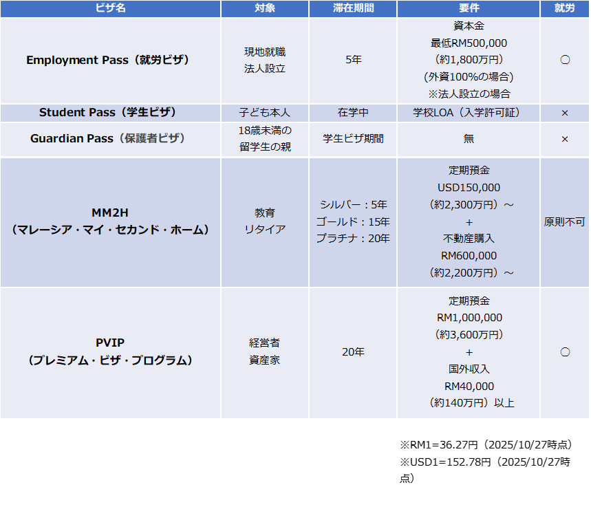 - 申請時、月収RM40,000(約140万円)+資産RM1,000,000(約3,600万円)