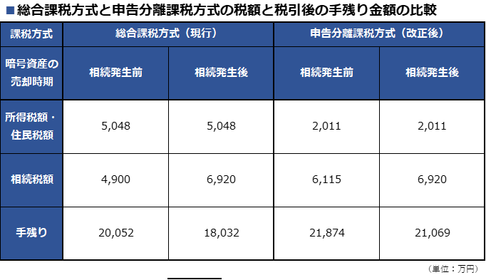 相続開始前に暗号資産を売却した方が所得税・住民税額の分だけ相続財産が圧縮され、