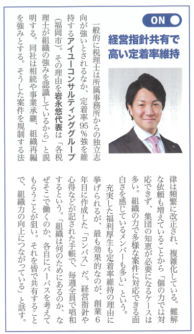 インタビューでは、異例の《定着率95%超》の理由にフォーカス。充実した福利厚生はもちろんながら、経営指針や心得などが記された「COMPASS(コンパス)」によって、組織内での意識の共有・方向性の統一が最も効果的だと語っています。