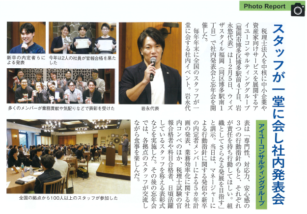 昨年12月に開催した全社忘年会の様子が紹介されています。