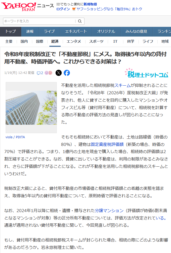 今回のインタビューでも触れている「貸付用不動産評価の見直し」の内容を含めた、