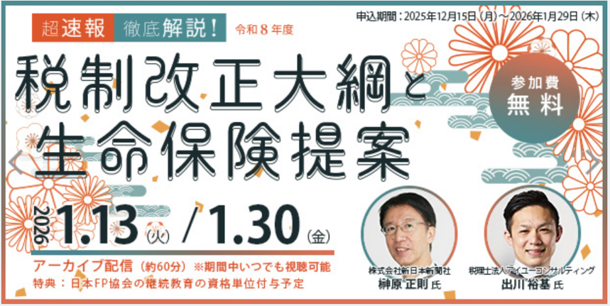 1月13日、30日の2日間にわたり、大手保険会社及び保険代理店向けのオンラインセミナーにグループ共同代表・出川が登壇いたしました。
