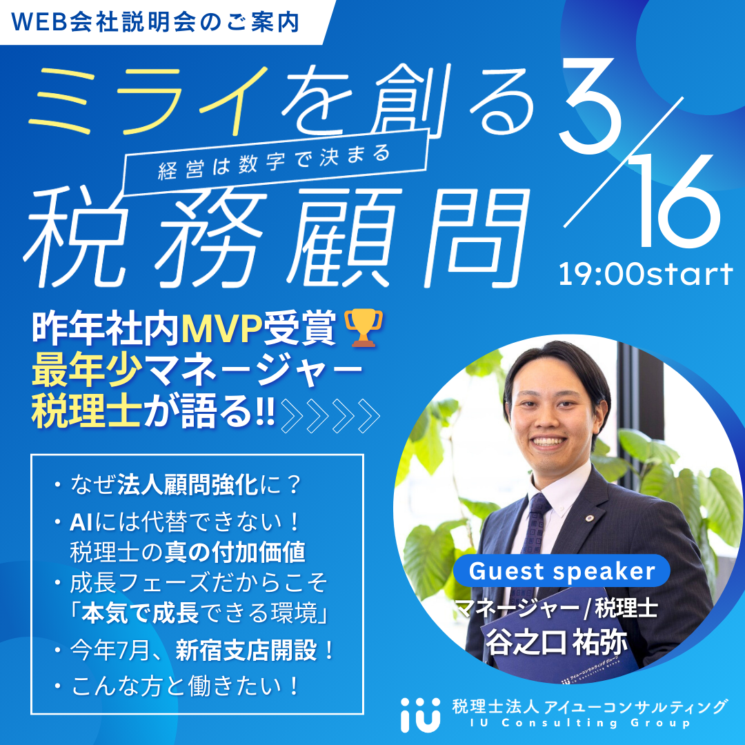 後半では、「税理士としてのキャリア」をテーマに、大手税理士法人での修行時代から、アイユーコンサルティンググループ設立に至るまでの歩みを紹介。AIの進化を踏まえ、これからの時代に税理士が発揮すべき本質的な価値とキャリア戦略について言及しました。